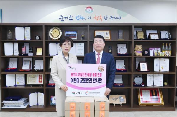 [한국뉴스타임=편집국] 구리시는 스쿨존 교통사고를 예방하기 위해 지역 내 초등학교 1학년 입학생 1,171명을 위한 교통안전 용품(책가방 걸이용 반사판) 1,500개를 구리남양주교육지원청에 전달했다.