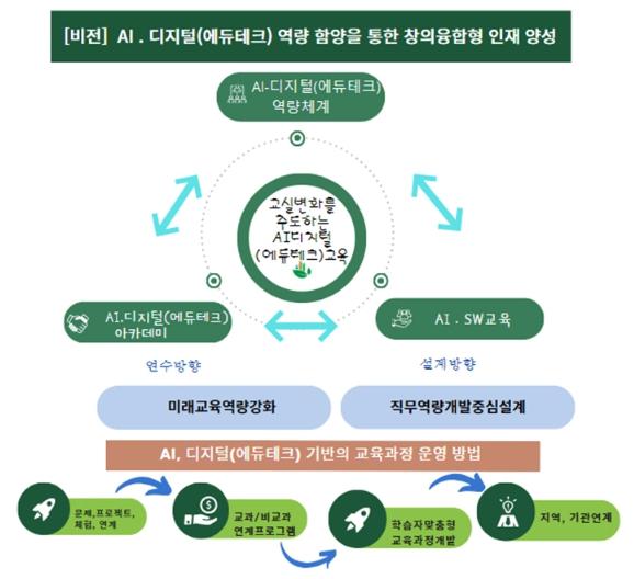 단계별 주요 프로그램은 ▲기초과정- AI·디지털(에듀테크) 수업에 관한 기초 소양 강화 ▲심화과정- 교과 내, 교과 간 융합 수업 ▲전문가과정-창의 역량과 SW?AI 소양 강화 등이다.