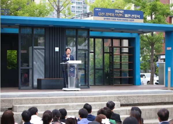 주광덕 시장은 “정약용 선생의 ‘실사구시’와 ‘공렴’, ‘위민’ 정신을 바탕으로 남양주의 정체성을 강화하고, 지역경제 활성화를 통해 시민의 삶의 질을 높이겠다.”라며 ‘정약용의 상상을 깨우는 남양주’라는 비전을 발표하고 대형 퍼즐을 완성하는 퍼포먼스를 선보였다.