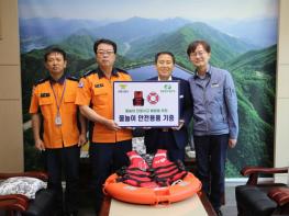이번 기증식은 지역발전과 안전을 위해 따뜻한 공동체를 만들어 가는 청평양수발전소와 지역의 안전을 책임지는 가평소방서가 지역 주민과 가평 계곡과 하천을 찾는 국민들의 안전을 확보하기 위해 마련됐으며, 가평군 물놀이 사고 위험지역 8개소에 무료로 구명조끼 등 안전용품을 설치할 예정이다.