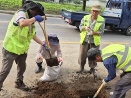 이날 윤정아 가산면장을 비롯해 가산면 행정복지센터 직원, 가로환경미화원, 기간제근로자 등은 청소차 3대를 동원해 침수 피해가 우려되는 가산면 주요 도로인 가산 2교차로부터 고인돌사거리까지 막힌 배수로를 뚫고 도로변 쓰레기와 토사 등을 제거했다.