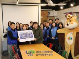 [한국뉴스타임=편집국] 우리은행 호평지점 임직원들은 지난 26일, 금곡동 홍유릉상점가 공유냉장고 운영을 위해 200만 원 상당의 백미 구입 비용을 남부희망케어센터에 전달했다.