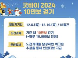 [한국뉴스타임=편집국] 구리시는 2024년 연말 맞이 건강가족 건강생활실천 캠페인으로 '굿바이 2024 10만보 걷기 챌린지'를 운영한다고 4일 전했다.