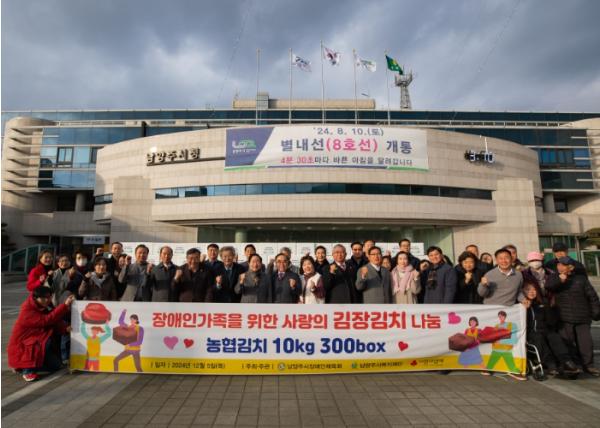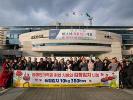 [한국뉴스타임=편집국] 남양주시장애인체육회는 5일 시청광장에서 후원자와 남양주복지재단, 장애인단체와 시설 관계자 등 30여 명이 참석한 가운데 장애인 가족들을 위한 ‘사랑의 김장 김치 전달식’을 진행했다.