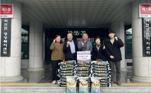 [한국뉴스타임=편집국] 포천시 화현면은 ㈜형제건설과 ㈜포우천개발이 연말을 맞아 지역사회에 나눔을 실천하기 위한 백미 300kg(30포)를 기부했다고 지난 5일 밝혔다.