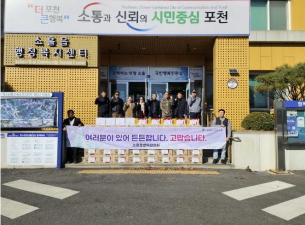 위문품 전달은 소흘읍 방위협의회가 매년 군, 경찰, 소방서 등 지역의 안전을 위해 헌신하는 유관기관에 감사의 마음을 전하기 위해 마련했다.
