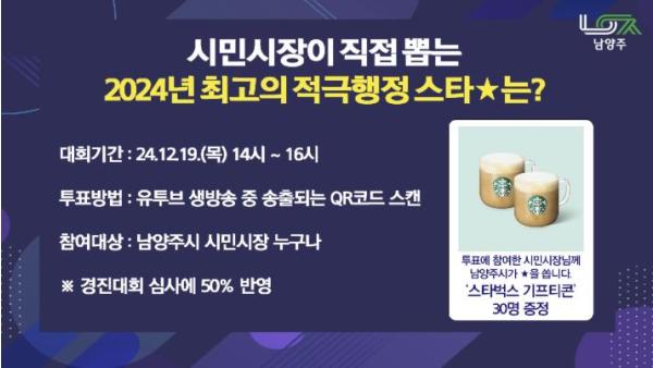 한편, ‘2024년 적극행정 경진대회’는 오는 19일 오후 2시부터 4시까지 시청 다산홀에서 개최되며, ‘남양주 TV’ 유튜브 공식 채널을 통해서도 생방송 된다.