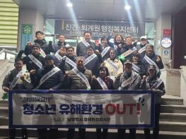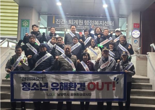 [한국뉴스타임=편집국] 남양주시 진건·퇴계원행정복지센터는 지난 12일 ‘청소년 유해환경 OUT’이라는 구호 아래 진건읍 용정사거리 상가 밀집 지역을 중심으로 청소년 유해환경 개선활동 캠페인을 실시했다.