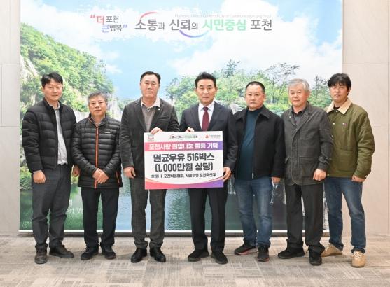 기탁식에서는 ▲양돈 농장인 오내돈 농업회사법인, 동암영농조합법인에서 성금 1,000만 원, ▲한우 사육 농가인 선복목장, 대운농장과 포천 한우를 판매하는 농촌사랑정육식당에서 성금 600만원, ▲ 포천낙농협회, 서울우유 포천축산계, 서울우유 협동조합에서 1,000만 원 상당의 멸균우유 516박스를 전달했다.
