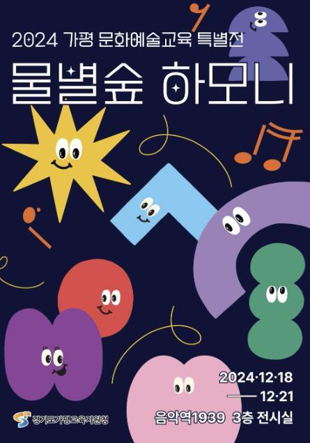 [한국뉴스타임=편집국] 가평교육지원청은 2024년 12월 18일부터 12월 21일까지 음악역 1939 3층 전시실에서 ‘물·별·숲의 하모니’라는 주제로 특별 전시회를 개최한다고 밝혔다. 이번 전시회는 가평미래교육협력지구 사업의 일환으로, 가평의 예술교육 성과를 지역사회와 공유하고, 학생들의 창의적이고 예술적인 잠재력을 발현할 수 있는 기회를 제공하기 위해 마련됐다.