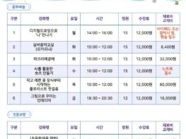 [한국뉴스타임=편집국] 구리시는 12월 12일 개관한 수택평생학습센터에서 2025년 1월 2일부터 2월 7일까지 디지털드로잉, 팝송으로 배우는 영어, 영화 속 미술 이야기 등 개관기념 단기프로그램 10개 강좌를 운영할 예정이다.