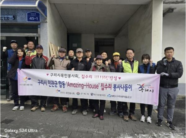 이번 봉사활동은 2012년 3월 16일 체결된 구리시와 구리시목민봉사회, 보병제73사단의 민·관·군 합동 ‘Amazing ?House’사업 협약에 따른 것으로, 시 관계자 2명을 비롯하여 목민봉사회원 9명, 구리새마을금고 임직원 3명, 보병73사단 장병 4명 등 총 19명이 참석했다.
