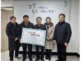 [한국뉴스타임=편집국] 가평군 북면 백둔리 상가번영회가 관내 어려운 이웃들을 위해 성금을 기탁하며 연말 나눔에 동참했다. 백둔리 상가번영회는 최근 북면 행정복지센터를 방문해 취약계층 지원을 위한 성금 100만 원을 전달했다.