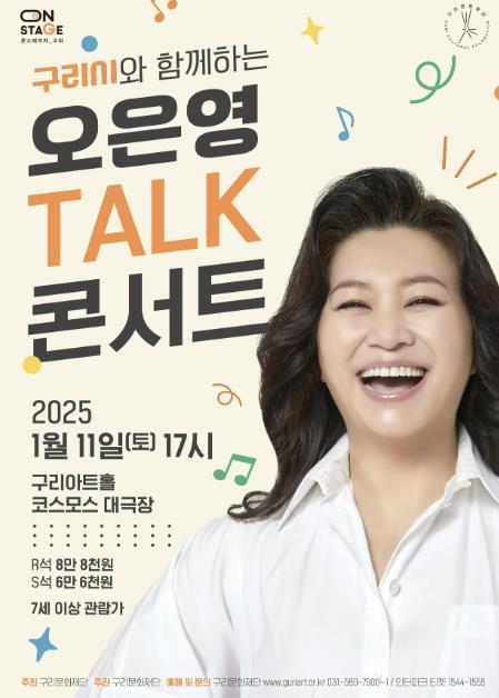 [한국뉴스타임=편집국] 구리문화재단은 1월 11일 오후 5시 구리아트홀 코스모스 대극장에서 2025년 새해 첫 번째 기획공연으로 구리시와 함께하는 '오은영 토크 콘서트'를 개최한다고 밝혔다.