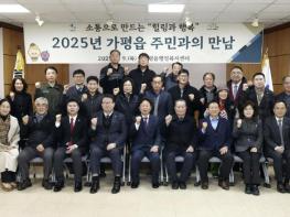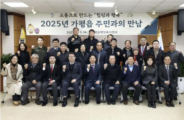 9일 가평읍 행정복지센터에서 열린 ‘2025년 가평읍 주민과의 만남’ 행사에는 지역민을 대표해 마을 이장들과 시민‧사회단체 대표 등 30명이 참여해 지역의 불편사항과 현안을 건의했다. 이를 통해 교통, 복지, 지역상권 등 다양한 분야에서의 요청과 문제점을 공유하며 해결방안을 함께 고민하는 시간을 가졌다.
