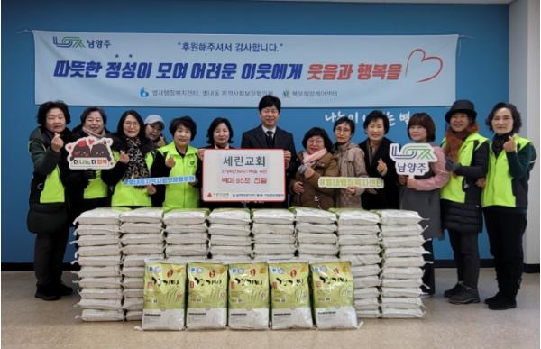 [한국뉴스타임=편집국] 남양주시 별내동 세린교회는 지난 9일 관내 취약계층 지원을 위한 쌀 85포(850kg)를 기부했다.