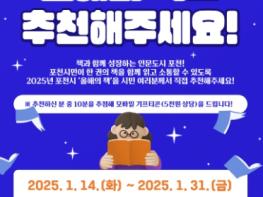 [한국뉴스타임=편집국] 포천시가 시민과 함께 독서문화를 확산하고, 지역 공동체 화합을 도모하기 위해 진행하는 ‘2025년 포천시 올해의 책’ 후보 도서를 추천받는다.