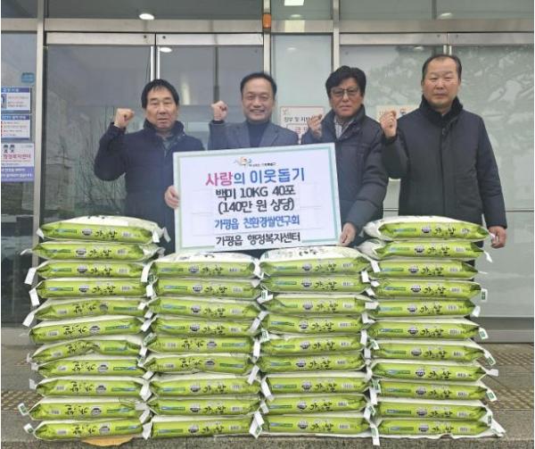 한편, 가평읍친환경쌀연구회는 지난해에도 백미 400kg을 기탁하며 지역사회 나눔 활동에 꾸준히 동참하고 있다.