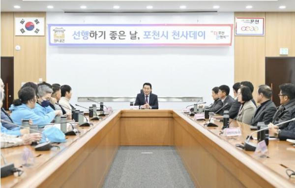 [한국뉴스타임=편집국] 포천시는 지난 15일 시정회의실에서 ‘선행하기 좋은 날, 포천시 천사데이’ 이웃돕기 기탁식을 개최했다.