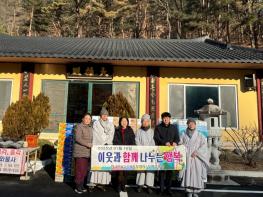 이번 나눔 활동은 수동면 내 어려운 이웃들이 따뜻한 명절을 보낼 수 있도록 돕기 위해 마련됐다. 나눔 행사에는 무량사 주지 지상 스님, 금담 홍선 큰 스님, 이진춘 수동면장, 신도, 자원봉사자들이 함께 참여해 의미를 더했다.