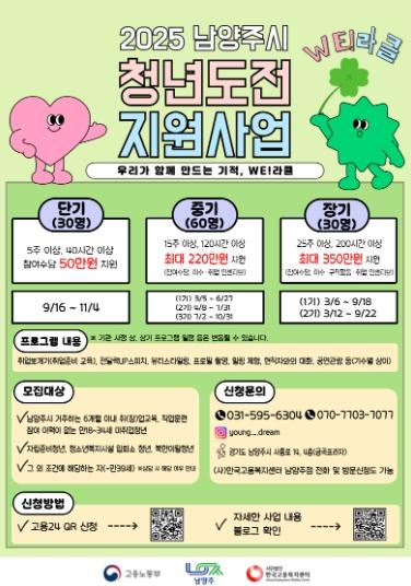 [한국뉴스타임=편집국] 남양주시는 지역 청년들의 취업 자신감을 높이고 사회 진출을 지원하기 위해 맞춤형 프로그램과 참여수당 등을 제공하는 ‘2025년 청년도전지원사업’ 참여자를 선착순 모집한다고 20일 밝혔다.