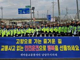 [한국뉴스타임=편집국] 새마을교통봉사대 남양주시지대는 지난 19일 나용자 대장을 비롯한 각 지구대 대장 및 대원 35여 명이 참여한 가운데, 먹골IC 고속도로 입구에서 설날맞이 교통안전 캠페인을 실시했다.