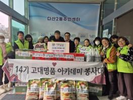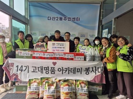 [한국뉴스타임=편집국] 14기 고대 명품 아카데미 봉사대는 21일, 다산2동 내 주거 환경이 열악한 복지 취약계층 12가구를 대상으로 나눔 꾸러미를 전달했다.