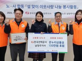 [한국뉴스타임=편집국] 한국전력공사 남양주지사는 지난 20일 설 명절을 맞아 150만 원 상당의 온누리상품권을 기탁했다.