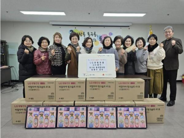 [한국뉴스타임=편집국] 구리시 동구동은 설 명절을 맞아 지난 21일 동구동행정복지센터 대회의실에서 동구동 통장협의회 임원진으로부터 생활용품 선물세트 40세트를 전달받았다.