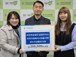 [한국뉴스타임=편집국] 국민연금공단 남양주지사는 지난 22일 설 명절을 맞아 서부희망케어센터에 온누리상품권 20만 원을 후원했다.