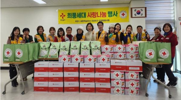 [한국뉴스타임=편집국] 구리시 인창동적십자봉사회는 1월 23일 설 명절을 앞두고 회원들의 정성으로 마련해 직접 포장한 식료품 세트, 쌀, 과일음료, 떡국떡 등을 저소득 홀로 어르신들의 명절나기 지원 후원물품으로 전달했다.