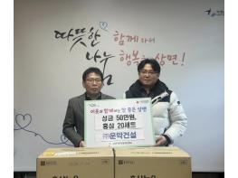 [한국뉴스타임=편집국] ㈜운악건설은 최근 가평군 상면행정복지센터를 방문해 성금 50만 원과 홍삼세트 20박스를 기탁했다.