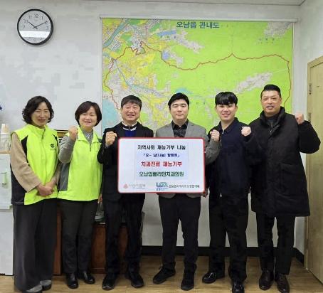 전달식에는 오남임플라인치과의원의 한현우 원장, 전천일 경영이사, 양성용 총괄실장을 비롯해 곽용환 오남읍장, 최현숙 오남읍 지역사회보장협의체 위원장이 참석했다.