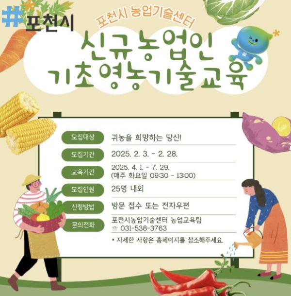 [한국뉴스타임=편집국] 포천시 농업기술센터는 오는 28일까지 2025년 포천시 신규농업인 기초영농기술교육 교육생을 모집한다.