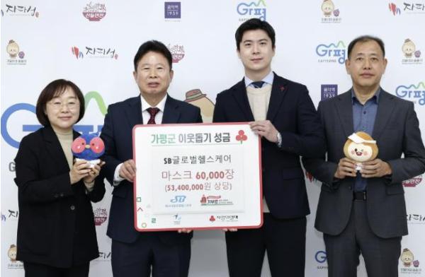 [한국뉴스타임=편집국] 가평군은 SB글로벌헬스케어에서 12일 군에 5,340만원 상당의 마스크 6만 장을 기탁했다고 밝혔다.