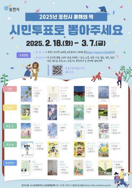 [한국뉴스타임=편집국] 포천시는 오는 2월 18일부터 3월 7일까지 20일간 독서문화 확산과 책 읽는 도시 조성을 위해 ‘2025년 포천시 올해의 책’ 선정을 위한 시민투표를 실시한다.
