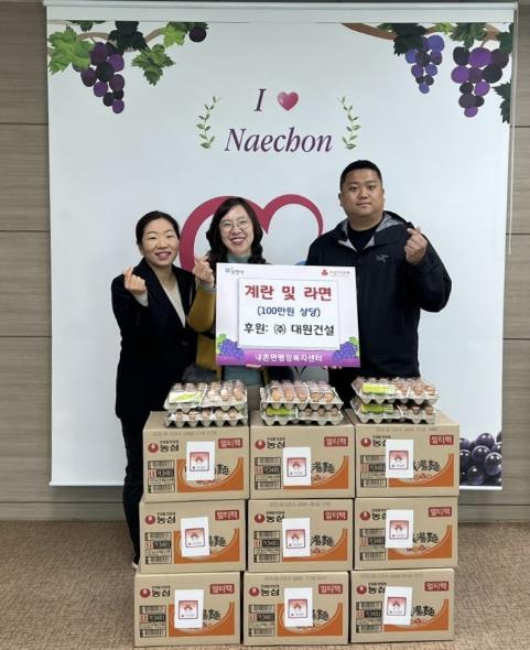 [한국뉴스타임=편집국] ㈜대원건설은 지난 21일 취약계층을 위해 계란과 라면(100만 원 상당)을 기탁하며 ‘이웃사랑 나눔 릴레이 30호’에 동참했다고 밝혔다.