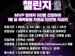 청년들은 7월 중 성과공유회를 통해 각 팀의 활동 경험을 나누게 되며, 시는 MVP 팀(크루) 50명에게 체육활동 지원금 10만 원을 남양주사랑상품권(지역화폐)으로 지급한다.