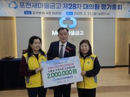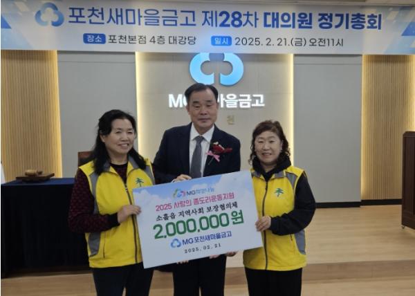 한편, MG포천새마을금고는 이재민을 위한 식품·위생키트 150세트 지원, 포천지역자활센터에 200만 원 기탁, 포천새마을회에 300만 원 기탁, 2023년 소흘읍 지역사회보장협의체에 200만 원 기탁 등 지역사회를 위한 꾸준한 나눔 활동을 이어가고 있다.