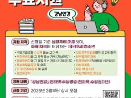 [한국뉴스타임=편집국] 남양주시는 사교육비 부담 완화 및 교육 기회 균등화 실현을 위해 관내 중·고등학생 1,500명 및 취약계층 청소년에게 ‘강남구청 인터넷 수능방송’(강남인강) 수강권을 지원한다고 25일 밝혔다.