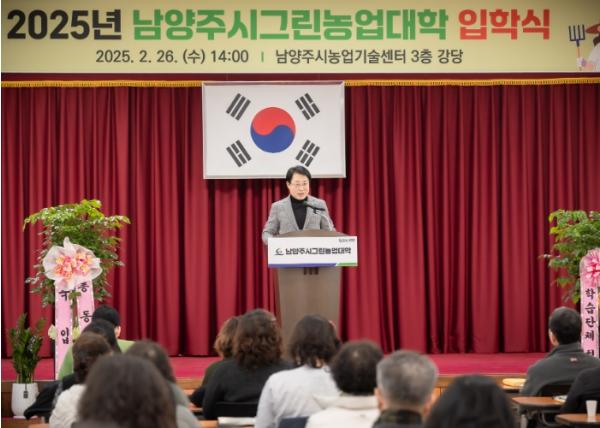 [한국뉴스타임=편집국] 남양주시의회는 26일 농업기술센터 3층 대강당에서 열린 남양주시 그린농업대학 입학식에 참석해 신입생들에게 축하의 인사를 전했다.