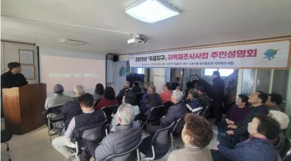 이번 주민설명회에서는 본격적인 지적재조사사업 추진을 앞두고 지적재조사사업의 필요성, 추진 절차, 경계설정 기준, 조정금 산정, 기대효과 등을 설명하고, 주민들의 의견을 청취했다.