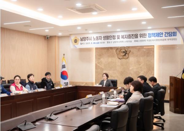 [한국뉴스타임=편집국] 남양주시의회 정현미의원은 2월 28일 오전 10시, 시의회 1층 소회의실에서 ‘남양주시 노동자 생활안정 및 복지증진 정책 제안 간담회'를 개최했다.