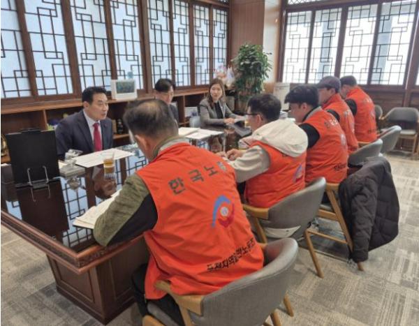 이번 면담에는 포천시의회 손세화 의원, 기후환경과장, 청소대행업체 환경미화원 대표 등 관계자가 참석했다.