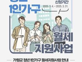 [한국뉴스타임=편집국] 가평군이 관내 청년들의 주거비 부담을 덜기 위해 올해도 ‘청년 1인 가구 월세 지원사업’을 3월부터 실시한다.