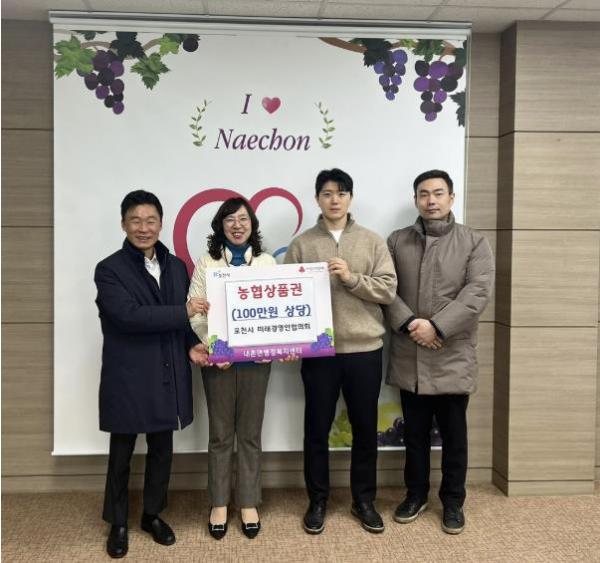 [한국뉴스타임=편집국] 포천시 미래경영인협의회(내촌면 소재 4개 업체)는 지난 5일 내촌면 행정복지센터에 어려운 이웃을 위한 100만 원 상당의 농협상품권 기탁하며, ‘이웃사랑 나눔 릴레이 31호’에 동참했다.