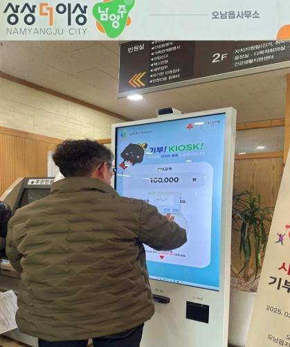기부 키오스크는 오남읍사무소 1층에 설치돼 신용카드와 모바일 페이 등을 활용해 쉽고 편리하게 기부할 수 있도록 운영됐다. 이번 운영 기간에는 총 60건 이상의 기부가 이루어졌으며, 모금된 기부금은 약 300만 원에 달한다.