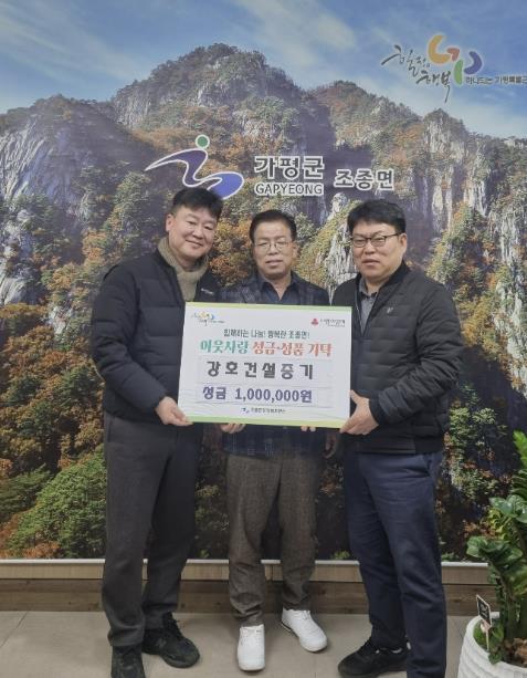 [한국뉴스타임=편집국] 강호건설중기 양경석 대표가 6일 가평군 조종면 행정복지센터를 방문해 이웃돕기 성금 100만원을 기탁했다.