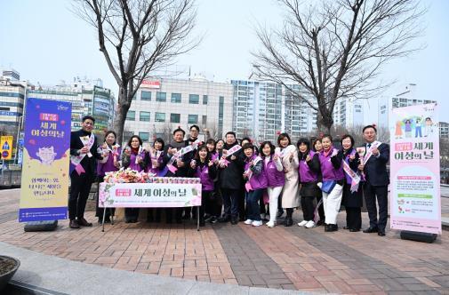 차별과 폭력을 방지하고, 평등한 사회를 이루어가기 위해 존중과 이해로 시작되는 양성평등 문화 확산을 주제로 진행된 세계 여성의 날 캠페인에서는 사회참여 확대를 위한 참정권을 의미하는 ‘장미’를 나누며 시민들과 양성평등의 의미를 되새겼다.