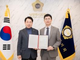 [한국뉴스타임=편집국] 남양주시의회는 11일 오전 의장실에서 법률고문 위촉식을 열고 한장헌 변호사(윈앤파트너스 법률사무소)를 의회 법률고문으로 신규 위촉했다고 밝혔다.